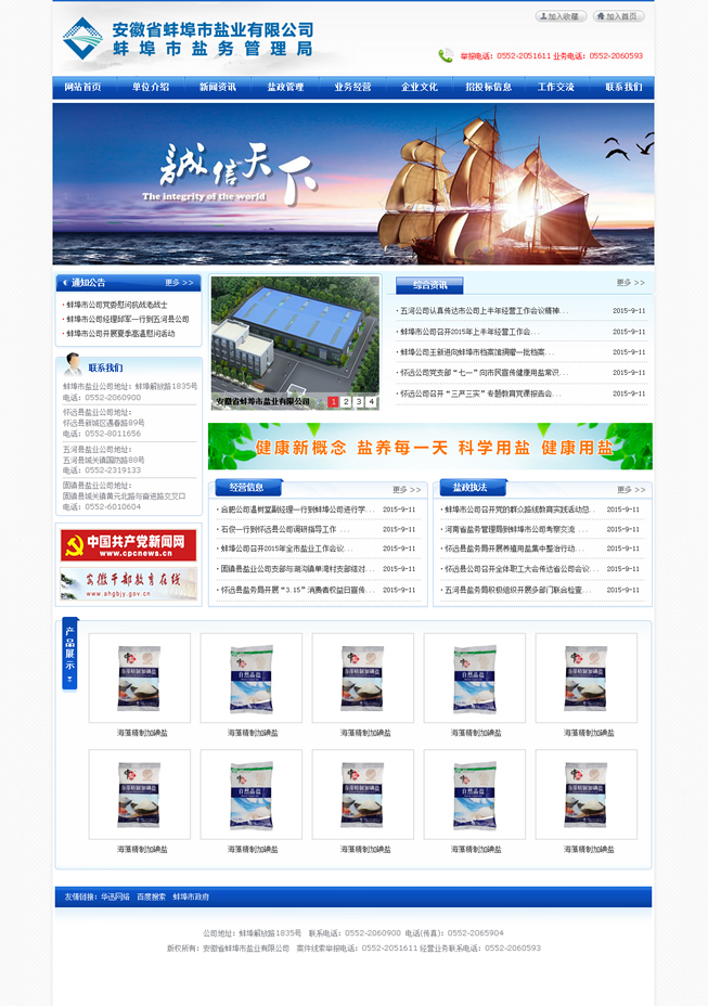 多年來,蚌埠鹽業(yè)認(rèn)真貫徹落實(shí)國家《食鹽專營辦法》、《食鹽加碘消除碘缺乏危害管理?xiàng)l例》,始終以食鹽市場安全穩(wěn)定為天職,忠實(shí)履職,恪盡職守。一方面對全市鹽業(yè)市場進(jìn)行鹽政監(jiān)管,嚴(yán)厲打擊鹽業(yè)違法犯罪,全力維護(hù)食鹽市場安全穩(wěn)定;另一方面負(fù)責(zé)組織開展食鹽專營,致力為消費(fèi)者提供安全、優(yōu)質(zhì)、放心的加碘食鹽,確保全市371萬人口的食鹽供應(yīng)。與此同時,蚌埠鹽業(yè)主動適應(yīng)市場需要,積極拓展非鹽經(jīng)營,在發(fā)展的道路上不斷深化改革,自主創(chuàng)新,產(chǎn)業(yè)結(jié)構(gòu)轉(zhuǎn)型邁出堅(jiān)實(shí)步伐,全區(qū)總資產(chǎn)已近8000萬元,現(xiàn)有經(jīng)營倉儲面積約1.5萬平米,在建倉庫1萬余平米。2014年實(shí)現(xiàn)銷售收入14762.69萬元,其中食鹽銷售4967.40萬元,非鹽銷售9795.20萬元、實(shí)現(xiàn)利稅1124.52萬元,經(jīng)濟(jì)社會效益居全省同行領(lǐng)先。先后榮獲全省鹽業(yè)系統(tǒng)先進(jìn)單位五連冠、安徽省勞動保障誠信示范企業(yè)、安徽省衛(wèi)生先進(jìn)單位、檔案管理考核安徽省一級單位、蚌埠市A級納稅信用單位、蚌埠市第十四屆文明單位等多項(xiàng)榮譽(yù)稱號。